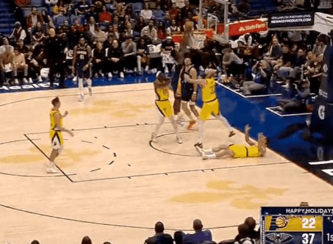 蔡恩籃下雙手補(bǔ)扣得手,鵜鶘首節(jié)領(lǐng)先步行者17分