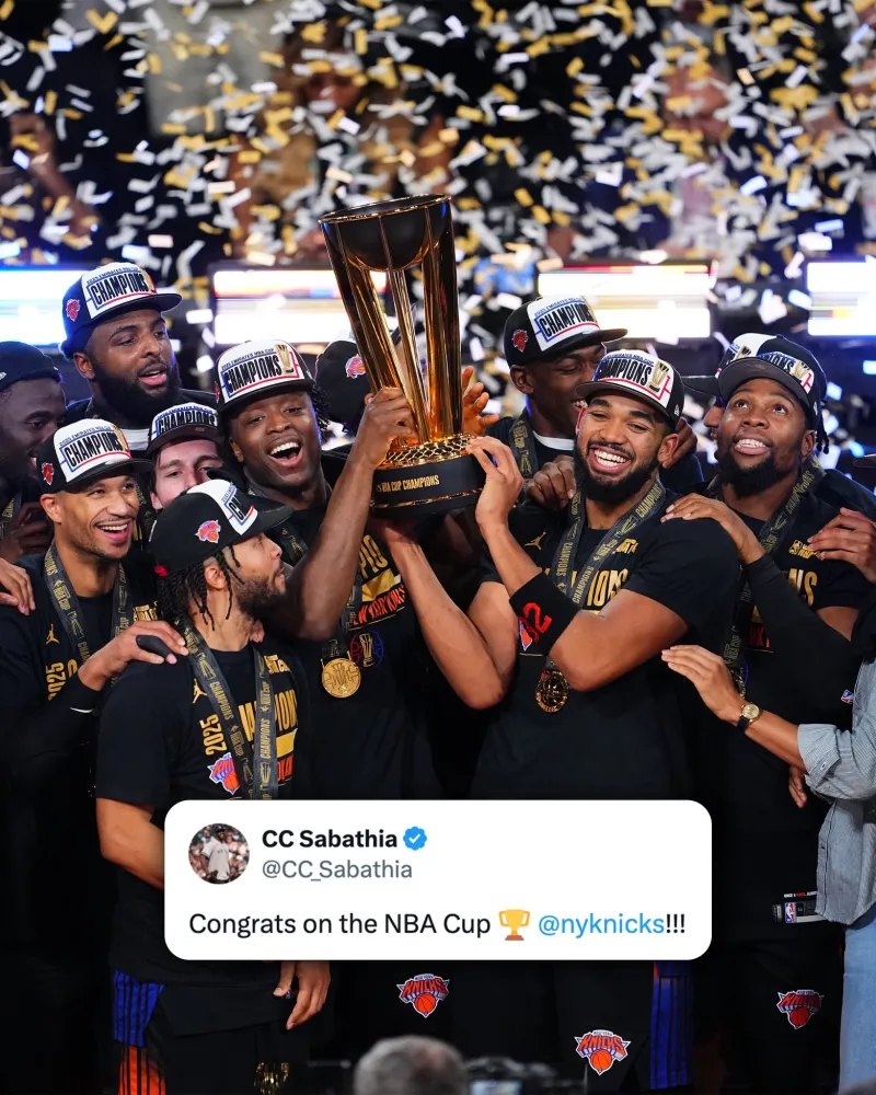 虎撲12月18日訊 昨日的NBA杯決賽,尼克斯124-113力克馬刺,間尼精彩奪得本屆NBA杯總冠軍。社媒曬昨