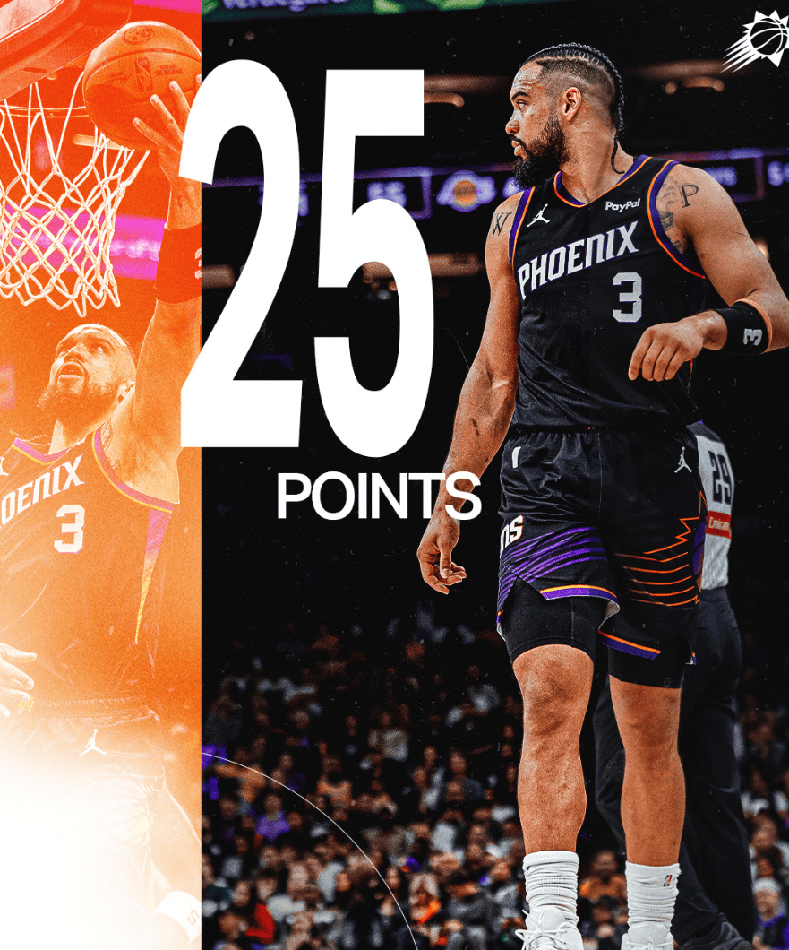 本場比賽,太陽球員狄龍-布魯克斯出戰(zhàn)23分鐘,15投10中,其中三分球6投3中,罰球2投2中,得到25分。