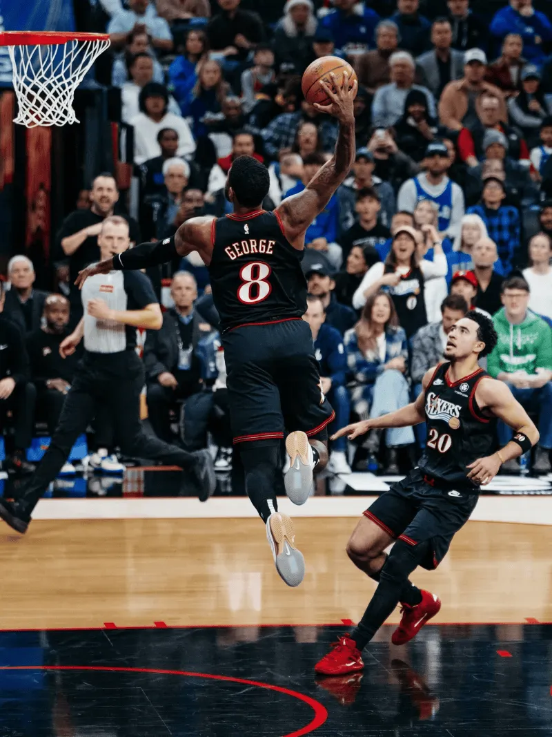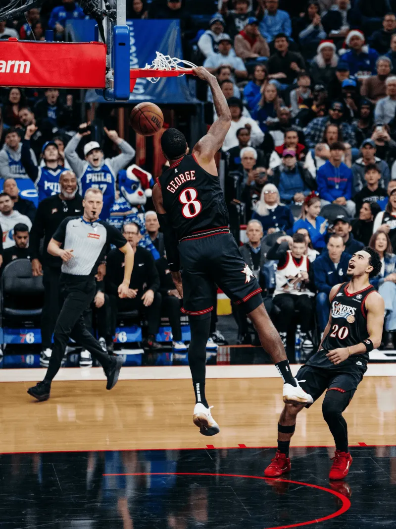 NBA官方曬出喬治劈扣瞬間:來自保羅-喬治的完美扣籃。