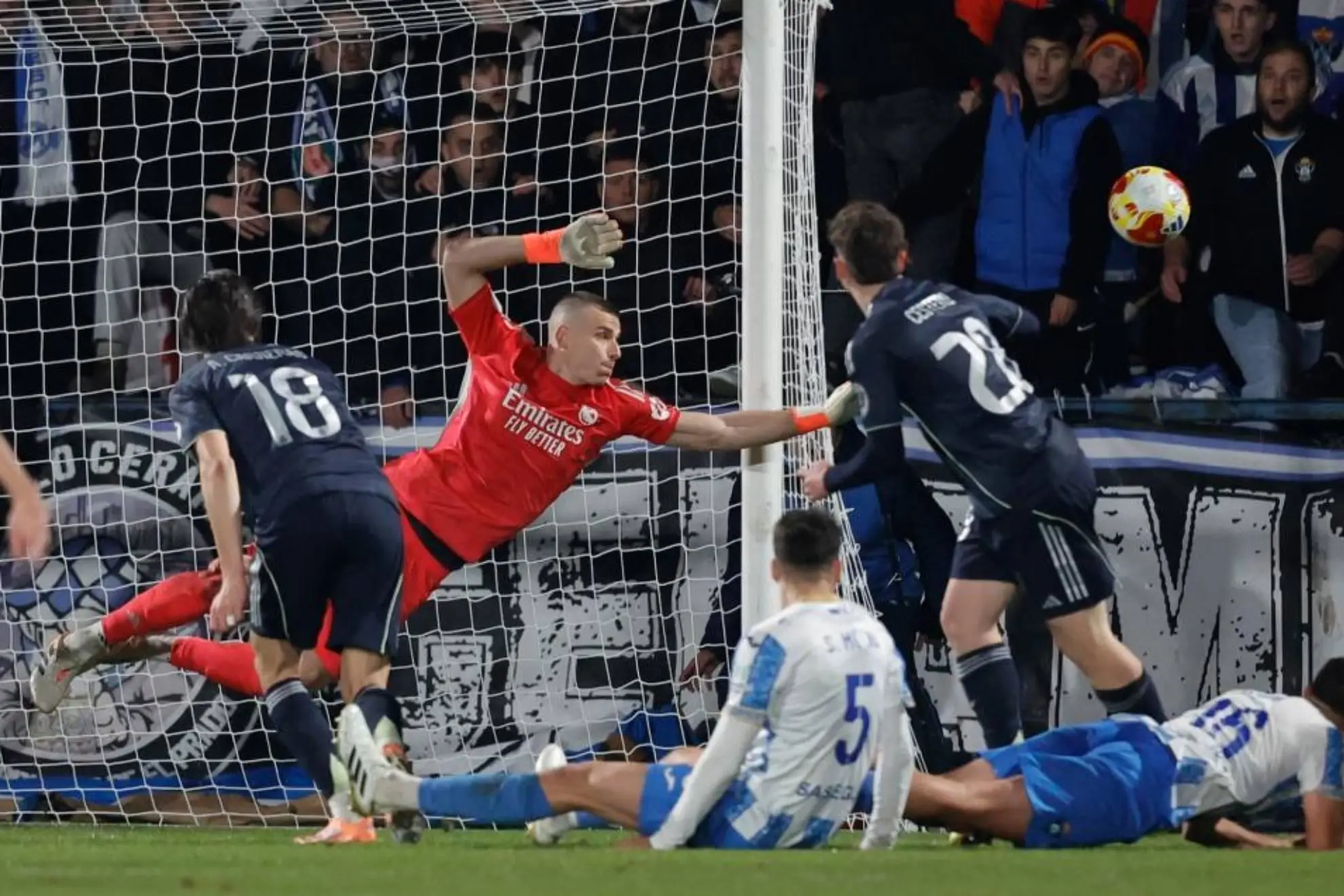比賽第93分鐘,塔拉維亞在打入第2球后持續(xù)施壓,前鋒以賽亞近距離射門,盧寧做出精彩側(cè)撲,將原本可能出現(xiàn)的絕平球拒之門外,幫助皇馬驚險(xiǎn)過關(guān)。