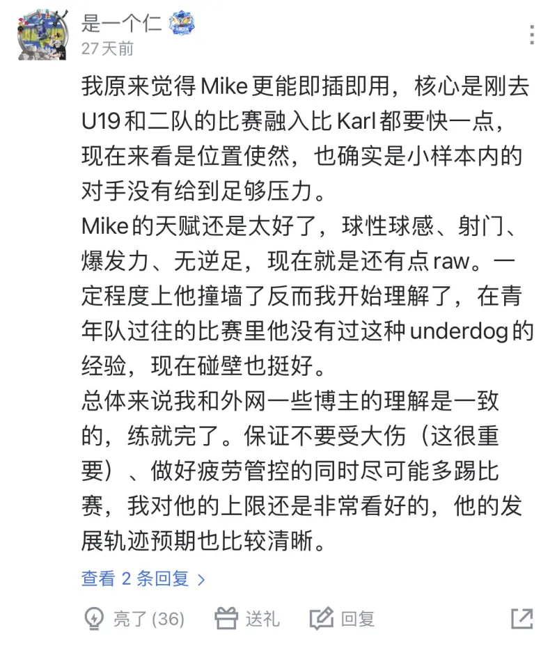 這個(gè)球員本身我就不介紹了,對(duì)于關(guān)注拜仁青訓(xùn)的人來說算老老老熟人了。如果你沒關(guān)注過,我直接給出我給他的【潛力上限】模版——理想中持續(xù)成長完全兌現(xiàn)天賦的格雷茨卡/更加現(xiàn)代化的哈維馬丁內(nèi)斯。