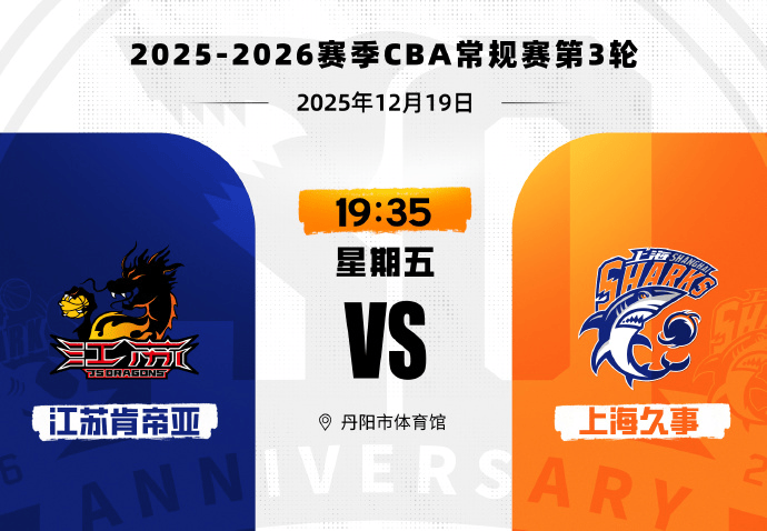 2025年12月19日,2025-2026賽季CBA聯(lián)賽常規(guī)賽第3輪,上海久事客場挑戰(zhàn)江蘇肯帝亞。