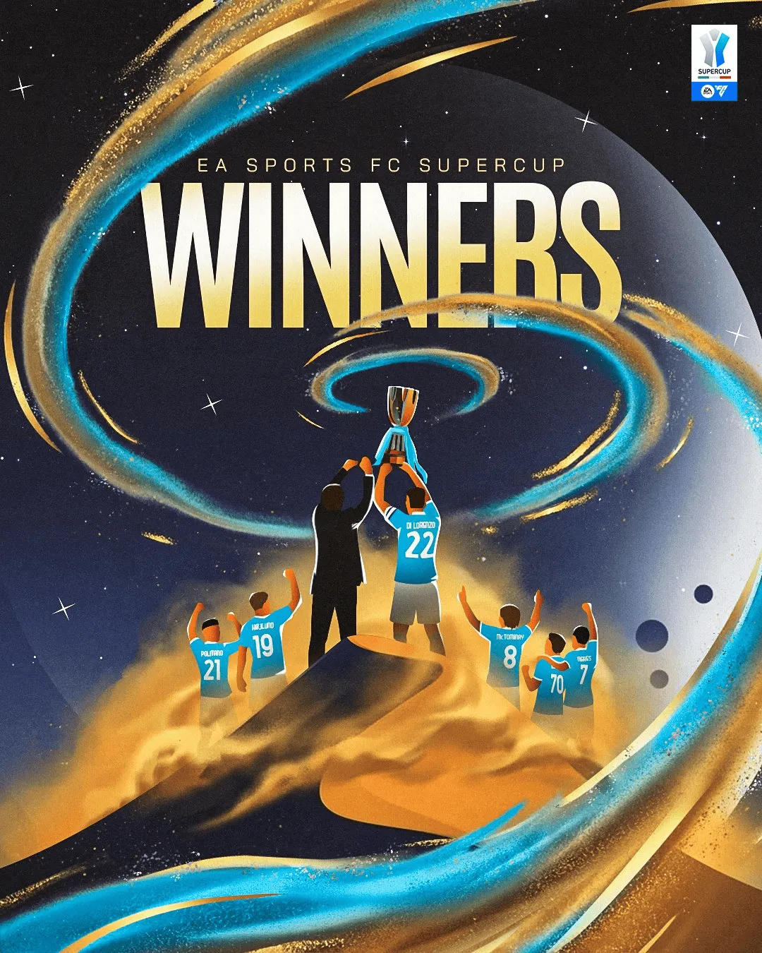 這是得意奪冠那不勒斯隊史第三次獲得意大利超級杯冠軍,前兩次冠軍經(jīng)歷分別來自1990年和2014年。冠軍