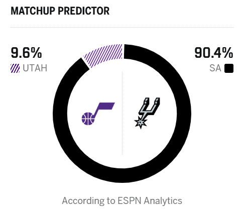 [流言板]ESPN預(yù)測(cè)明日比賽:馬刺勝率90.4%,爵士勝率9.6%