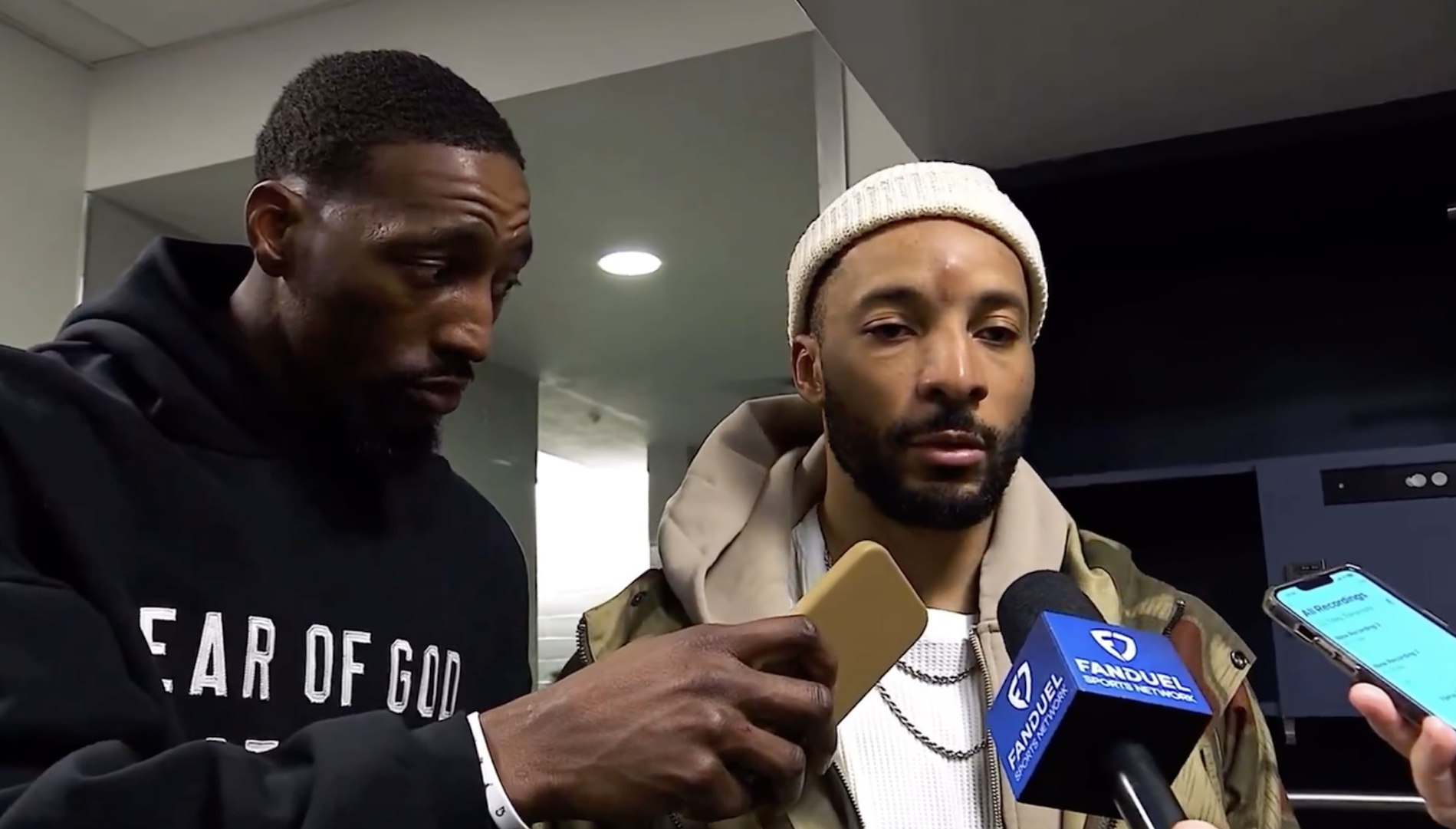 巴姆-阿德巴約全程假扮記者,好眼還需聽完了諾曼-鮑威爾的防守整段采訪。