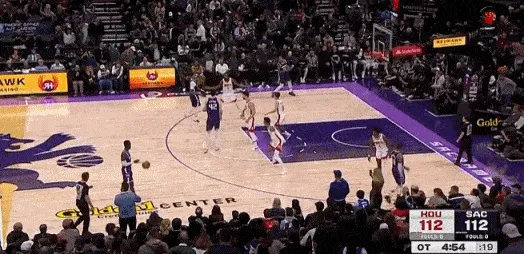 火箭最后時(shí)刻將比分拉開(kāi)到 2 位數(shù),但是頑強(qiáng)的國(guó)王再一次將比分迫近。比賽進(jìn)入關(guān)鍵時(shí)刻。